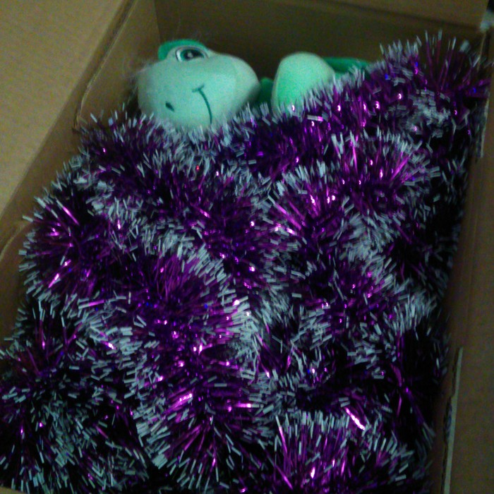 котоинспекцию мы пропустили и сразу же принялись терзать коробку. Пока я боролась с картоном за мной пристально следили из под мишуры)