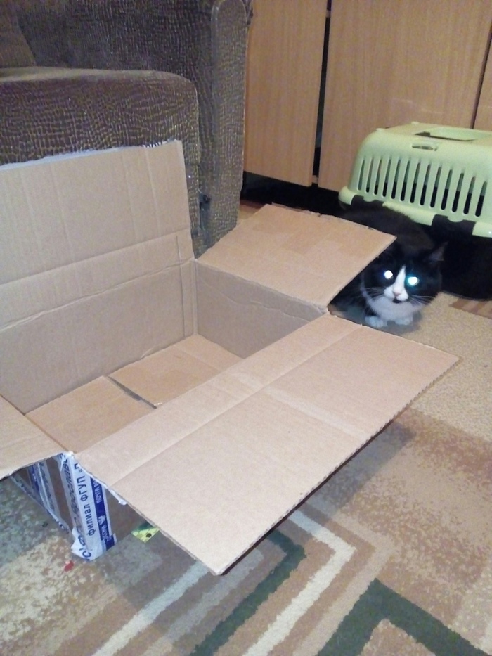 Приехала большая коробка. Кот ей сразу же заинтересовался. Кажется, он уже о чём-то начал догадываться...
