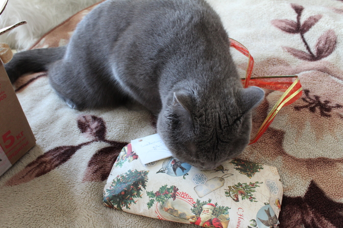 Вот только после прихода жены и получилось сфотографировать подарок для кота - конфета "мятная". Без неё фотографироваться кот в дальнейшем отказывался.