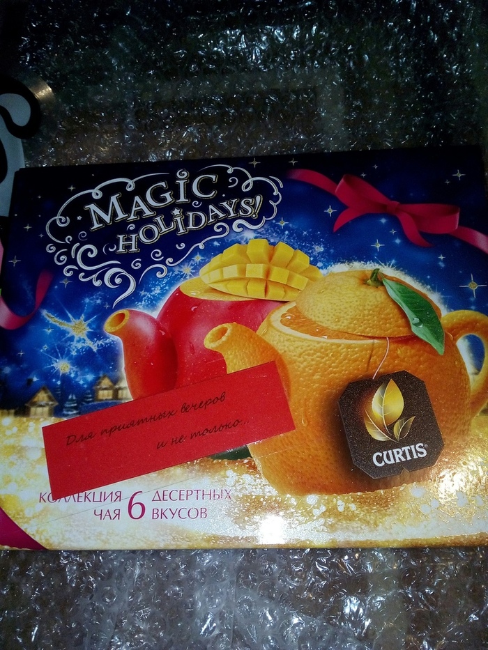 Не знаю, на сколько хорошо видно надписи на ярлычках (фотоаппарат купил, умение фотографировать - не купил =( ). Но там подарок для меня, для "рыжули-жены", коробочка для чая и кагора глинтвейна и для главного в доме.