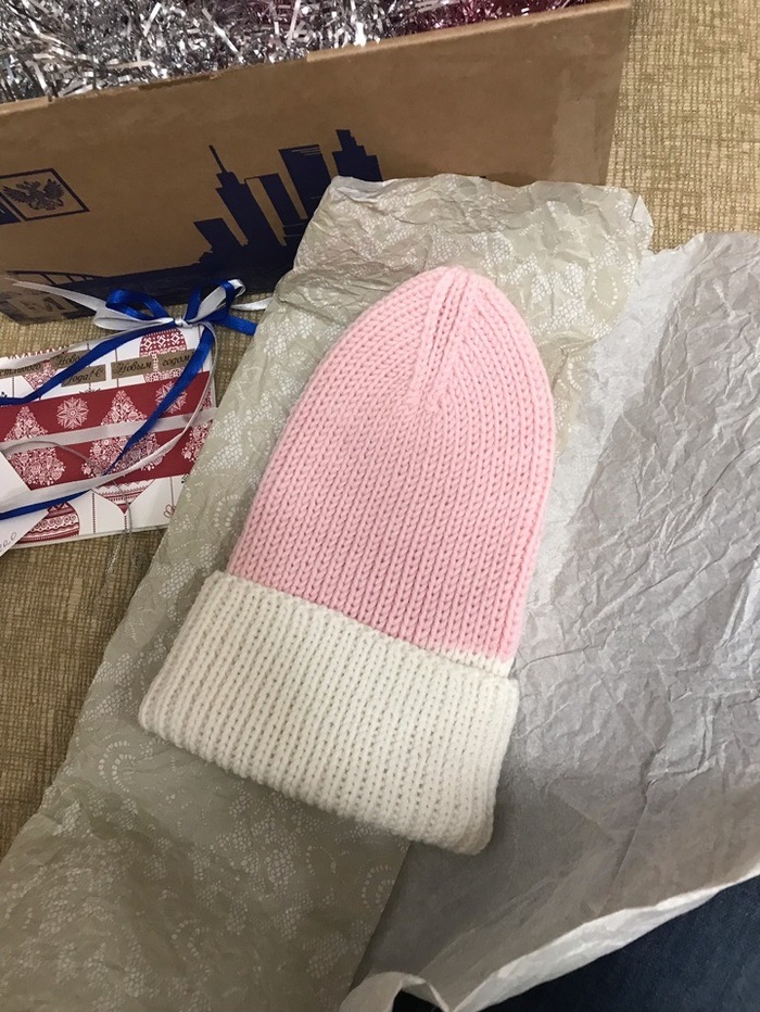 Шапочку я уже опробовала в деле, она очень теплая и мягкая! Да еще и розовая (самый мой любимый цвет).