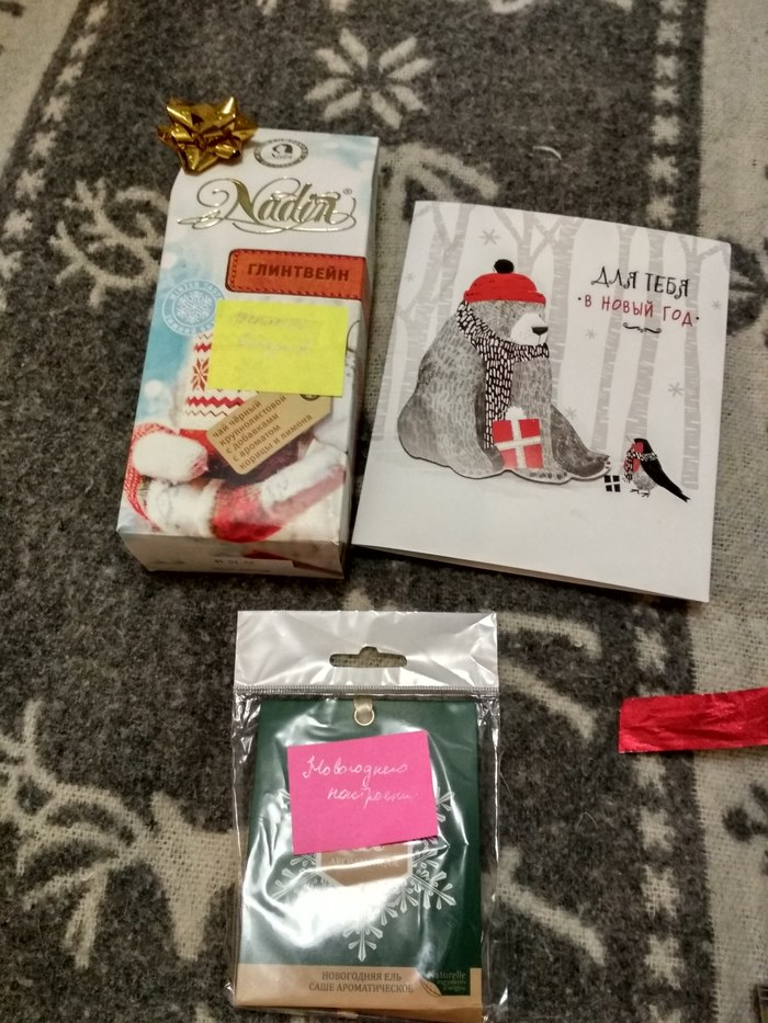 Посылку ждал с нетерпением и вообще идея такого обмена понравилась. Помогла получить новогоднее настроение.