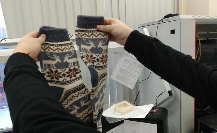 Носки пуховые для сына, пока что не придумали когда надевать их ему, так как по ламинату в них очень скользко и травмоопасно (