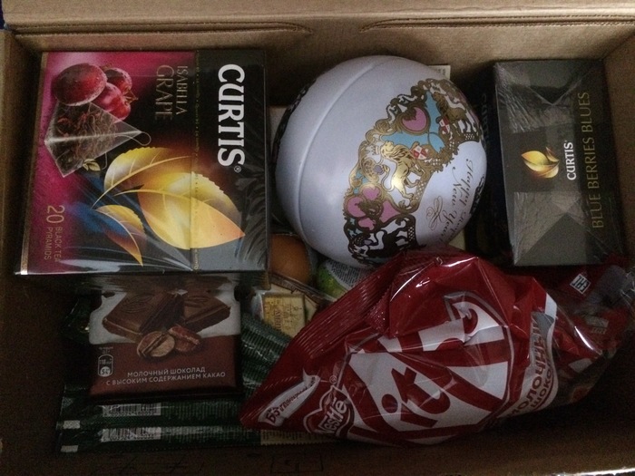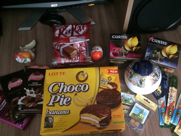 Это мой первый обмен подарками) и вот какую вкусняху мне прислал мой Дед Мороз из Нижнего Тагила) спасибо огромное, кот уже полакомился, магниты на холодильнике, а мы с мужем ждем вечера для вкусного чая со сладостями))))