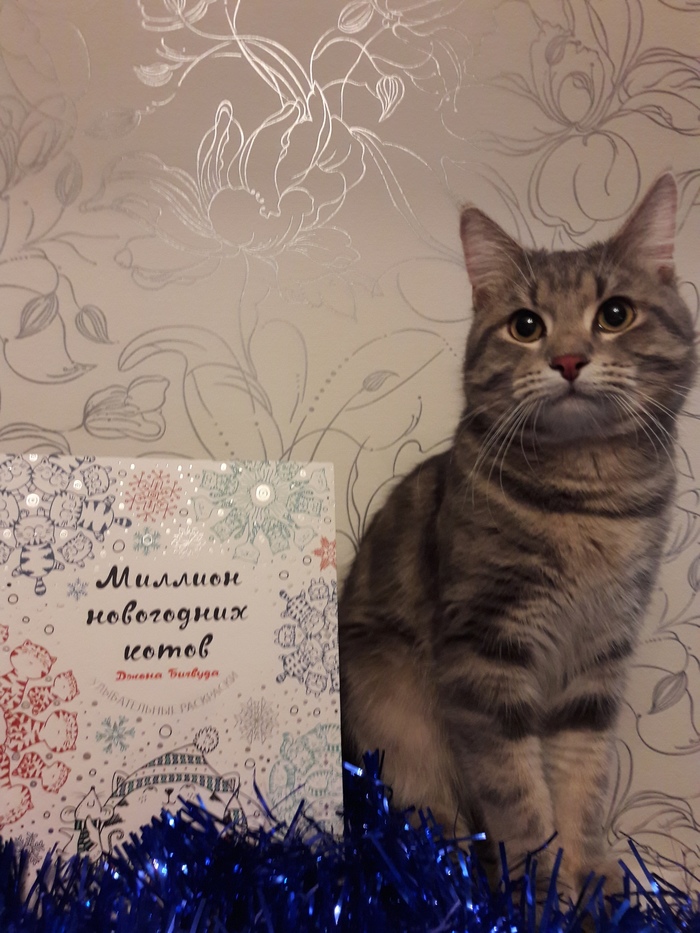 А еще в подарке я нашла раскраски с котиками)) Мой кот не любит коробки, но любит позировать, поэтому котиков к котику!
