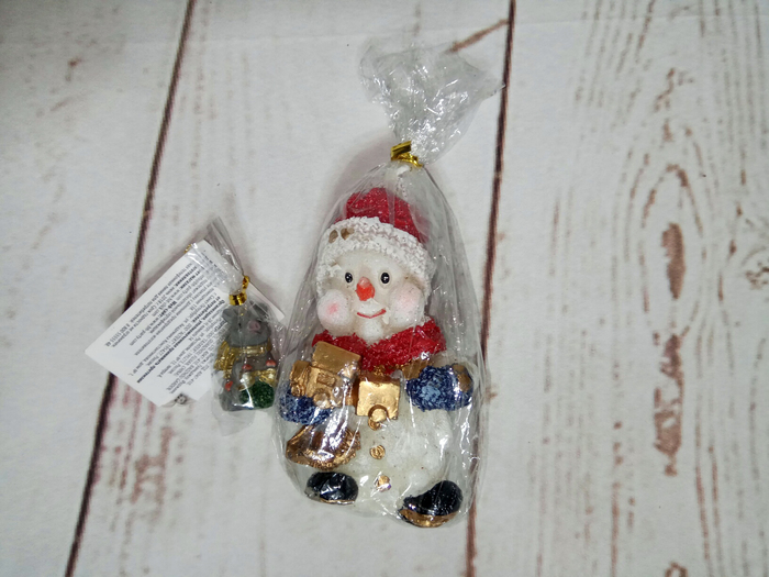 Свеча-снеговик (жечь жаба душит, буду любоваться) и маленький очаровательный символ наступающего года =)