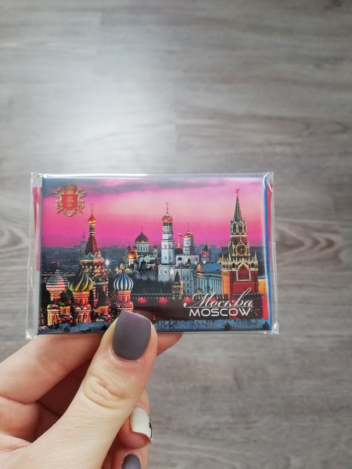 Магнитик из Москвы в коллекцию других экспонатов на холодильнике