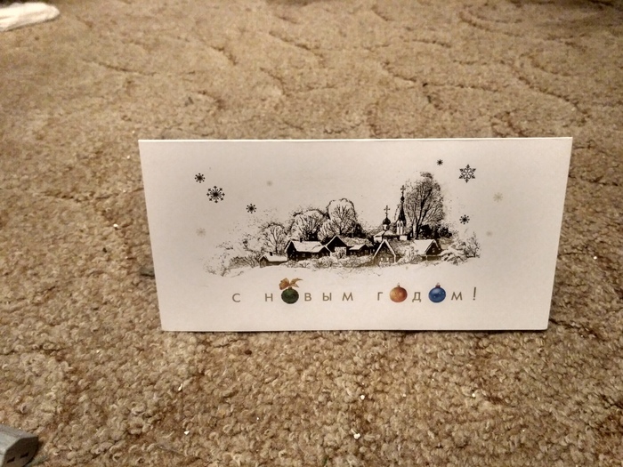 Теплая открытка. Ника отправителя не написано. Оксаночка, надеюсь, вы увидите этот пост. Спасибо огромное за подарок и создание новогоднего настроения 😊