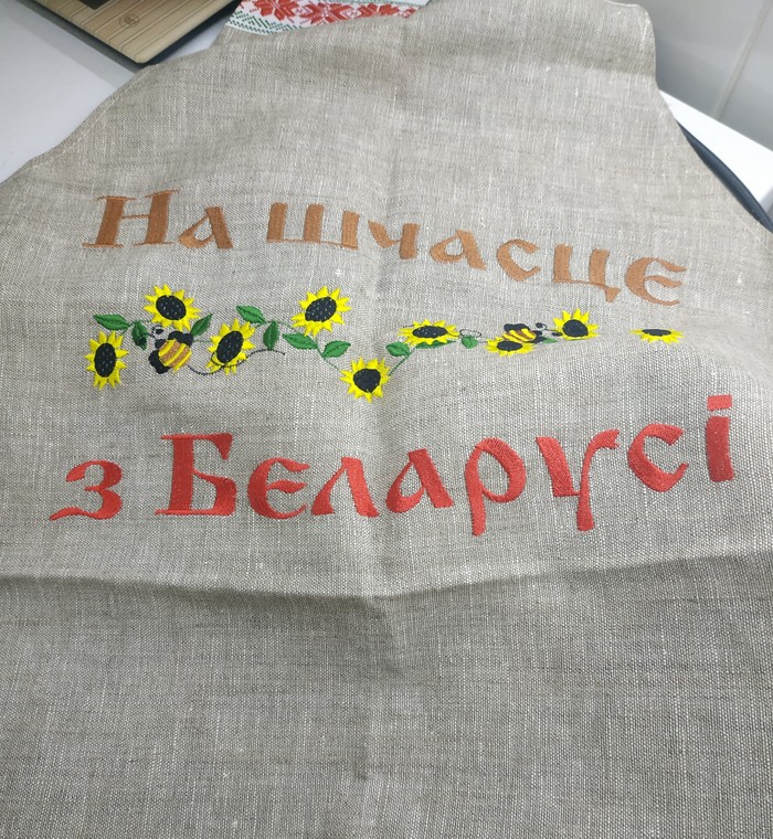 Иииииии..... (так я визжала, разворачивая оставшуюся часть подарка)) Просто невероятное льняное полотенце с рождественским узором и фартук с пожеланием счастья из Беларуси