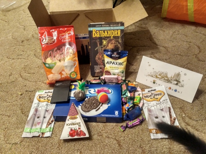Так же в посылке обнаружено множество вкусняшек для меня к чаю и лакомство для их котейшиств) Общий вид счастья и новогоднего настроения