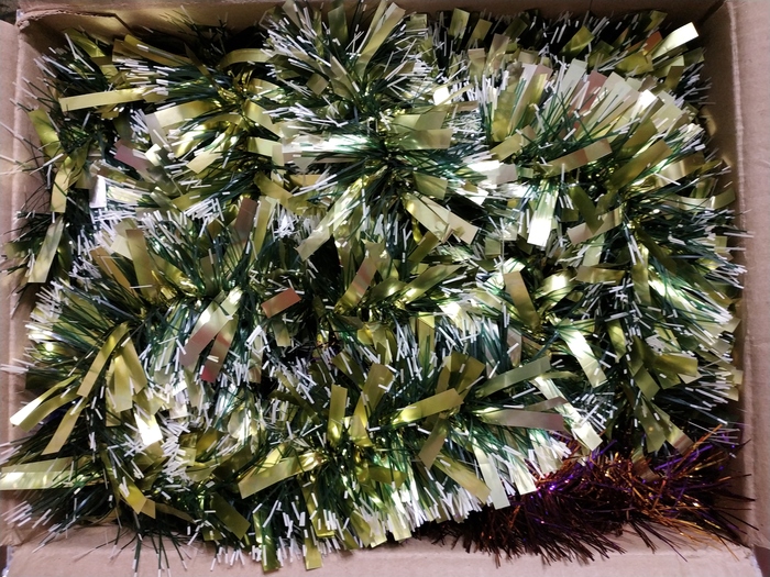 Ну что ж, мишура и открытка - для первого раза неплохо) Но что-то подсказывает мне, что под мишурой может быть не только дно коробки. Посмотрим.
