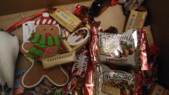 Почта со своим заданием справилась, носки не похищены, конфеты не надкушены) И вот они, подарочки!