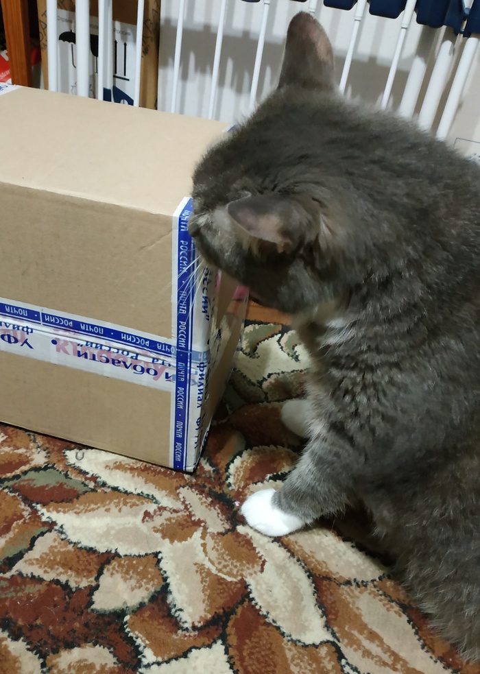 Котоинспекция на месте, коробка явно произвела впечатление: