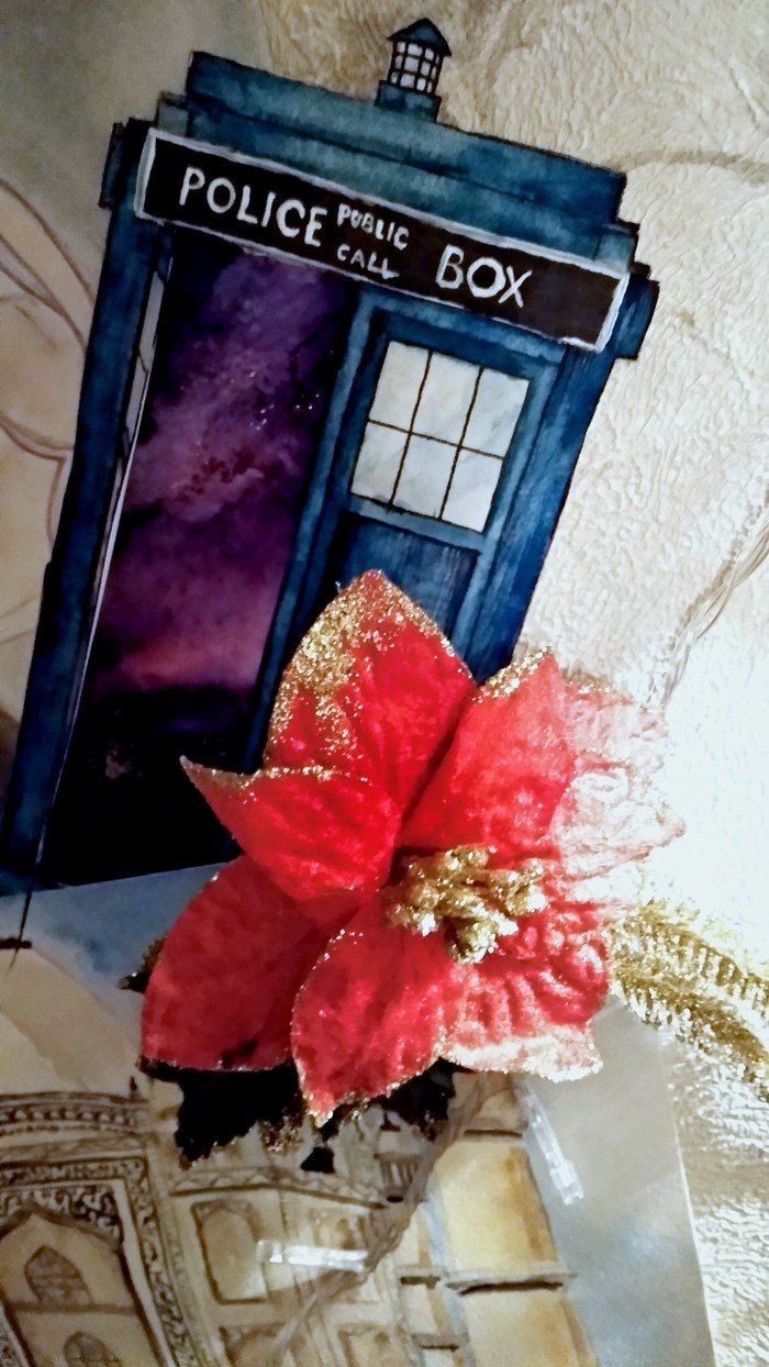 Мой Дедушка Мороз переживал по поводу отсутствия тематических подарков, но на самом деле я была в восторге когда увидела эту сделанную вручную открытку ТАРДИС. Естественно она тут же отправилась на мою стену