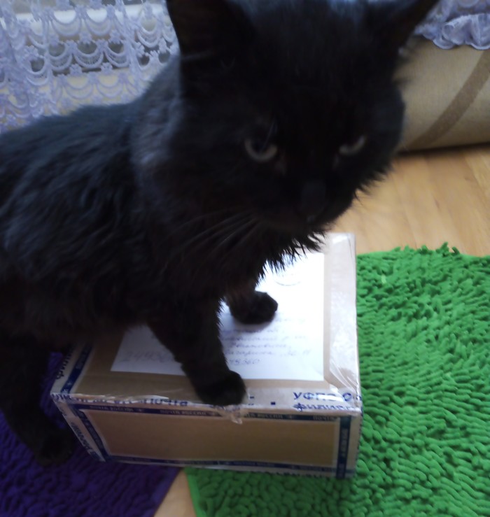Принеся посылку домой, мне тут же безумно хотелось её открыть и узнать, что же такого могло поместиться в такой коробище! :-) Кошек у меня нет, хотя я всегда мечтал о большом Мэйн- куне, поэтому инспекцию посылки я проводил вместе с брательником и мамой.