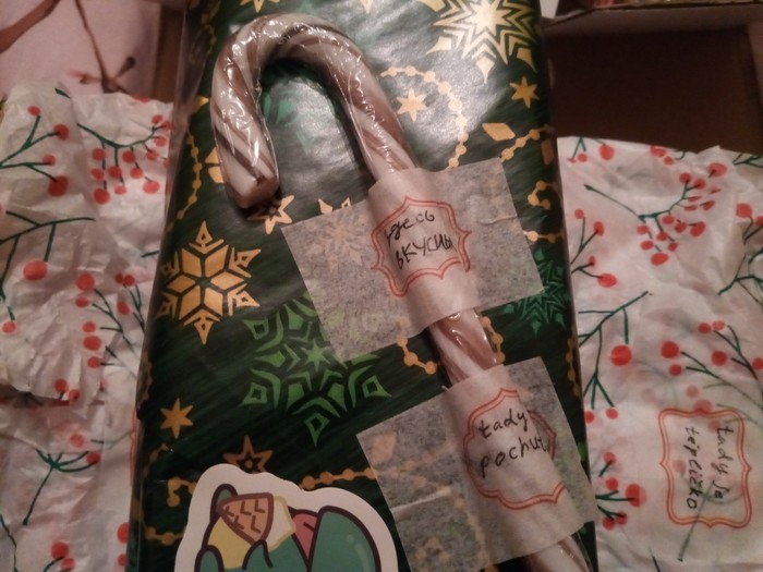 Та-дам! А что же у нас внутри? Моя милая снегурочка красиво все упаковала и снабдила милыми записками. Посмотрим!