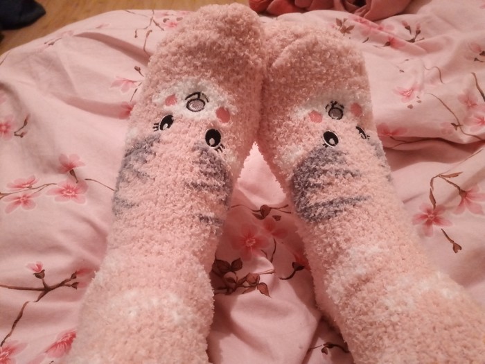 А тут - "здесь тёплышко". Моя снегурочка не прогадала. Как я и говорила, люблю все милое, и теплые носочки особенно! И с цветом 100% попадание! Не прелесть ли? Милота-милота)