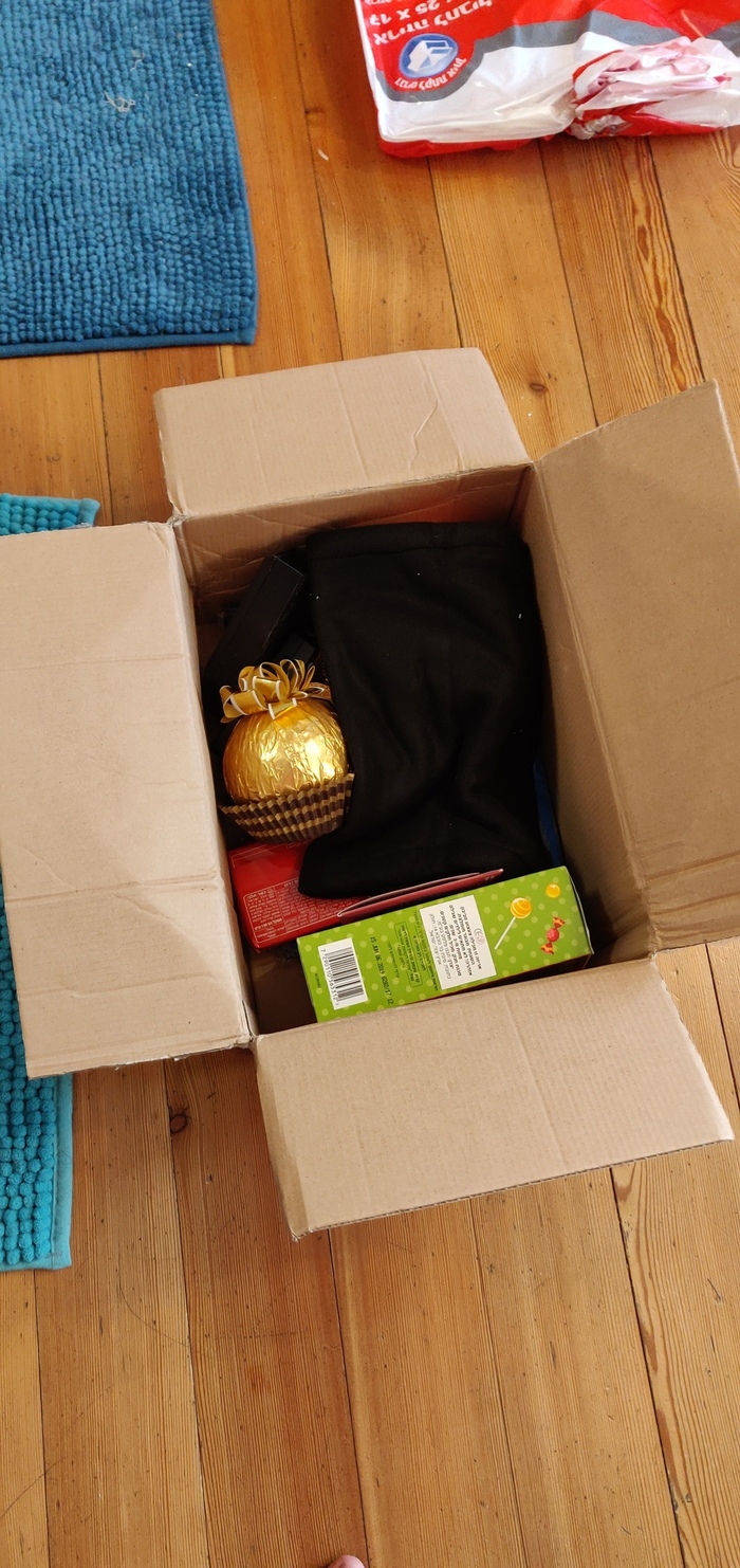 Первым лежало письмо на конфетах, коих тут очень много и разных и очень вкусных!!! Пока я читала его, кот изучал мишуру, сын с мужем, жуя конфеты, уже нашли домик для рыбок, мышей для кота и машинку, мне вручили кофе(он оболденен) и магнитик. Кот у нас странный и забрал себе пакет)))