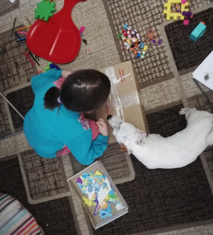 И так собравшись на полу всем семейством открыли заветную коробку, а там столько всего!