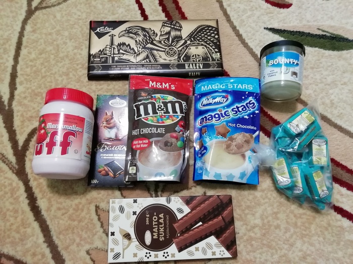 Помимо классных штук в подарке были еще и классные сладости, например: киндер-сюрприз (сразу сгрызла сестрёнка), набор из двух упаковок Toffifee (обожаю их, как ты узнала?!), "вкусная" открытка с четырьмя очень нежными шоколадками, коробка безумно вкусного и ароматного чая с малиной и мятой из "Вкусной помощи" и гвоздь сладостей: мармеладки "ОГОНЬ" со вкусом перца (угостил всю семью, мне попалась самая "ядрёная" мармеладина :))