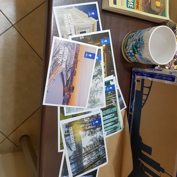 Как здорово, получить все что хотела! В детстве собирала открытки с городами ( куда хотела поехать). Потом с возрастом забросила это увлечение. Правда во многих городах побывала. А тут набор открыток Санкт -Петербурга еще и в акварели -25 лет.Пряжа тут же пошла в работу. В нашу слякоть хорошо и попить чаек с конфетами и пряниками. Дорогая Снегурочка Оля из Питера,  спасибо!