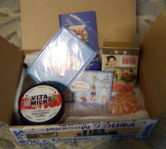 Мыло в форме мандаринки у меня пытались отбить и съесть, но я не так проста )  Новогоднюю шоколадку слопаем в новогоднюю ночь, блокнот, календарик и обложка на паспорт освоены, и крем пахнет очень вкусно! Дедушка Мороз Иван, спасибо за волшебное настроение, подарок и поздравления! Спасибо всем сознательным внукам и Сантам чудесного проекта АДМ. С наступающим всех!)