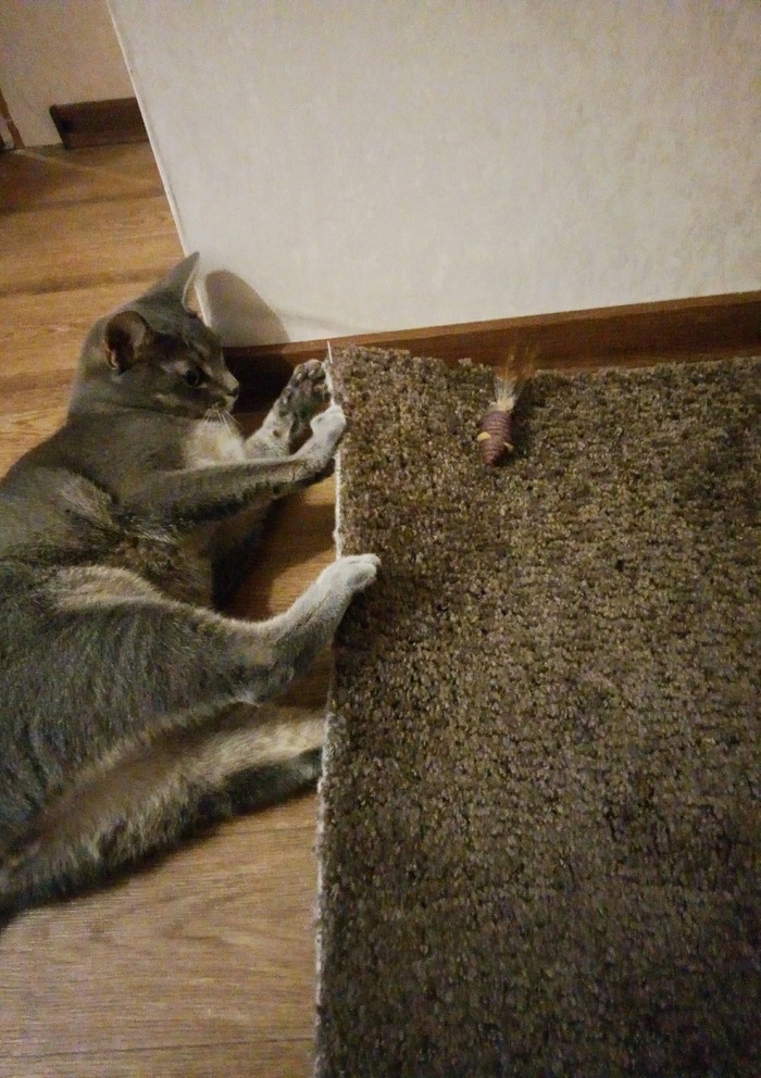 Сегодня получила посылку из Сыктывкара. К сожалению не сфотографировала до распаковки, поэтому упаковок уже нет. Коту действительно понравилась коробка(кто бы сомневался), а игрушку он не может оставить в покое. Спасибо тебе, за новогоднее настроение.
