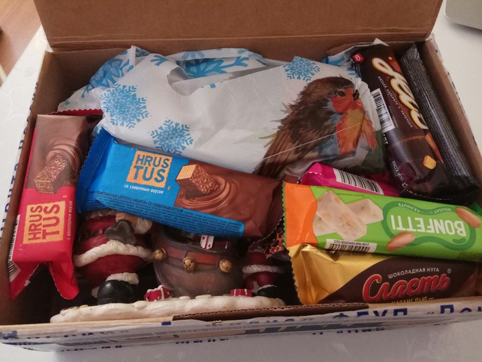 Получила подарок давненько, но написала отправителю, что до НГ не открою... Как же) 2 недели стояла коробка на шкафу, в итоге не выдержала, всех уложила спать, и пошла по тихому смотреть, что там.