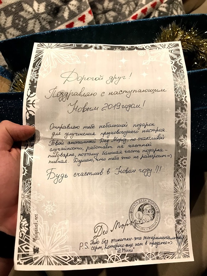 А в рамках основного на данный момент проекта "Анонимный Дед Мороз на Пикабу 2018/2019" до сих пор любуемся на такую вот надпись