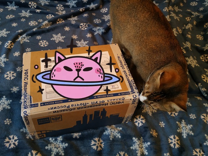 Сегодня, через 2 дня я уже бежала на почту, за подарочком. Коробка оказалась большой и увесистой)) Моя Мурка ее для начала проверила: