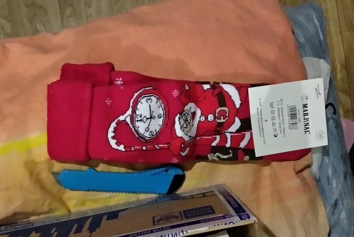В понедельник получила свою посылку. Дождавшись вечера, когда соберётся вся семья, сообщила им приятную новость и стала их пытать, открываем посылку сейчас, или оставляем до Нового года, чтобы открыть вместе с остальными подарками. Моя идея – ждать, не получила распространения). Дочь аж трясло, так срочно ей нужно было вскрывать. (Вообще она довольно спокойный ребёнок, такая гиперреакция меня очень удивила).