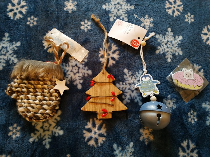 Первый свёрток звенел, в нем были ёлочные игрушки (обожаю деревянные!) и значок, который сразу улетел на рюкзак))