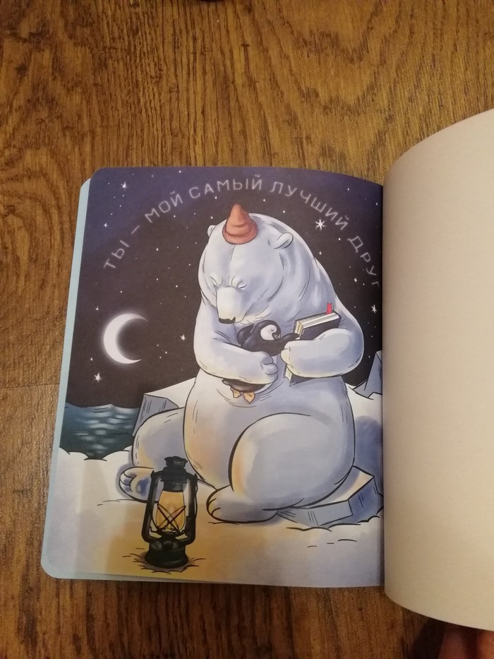 А на дне, под мишурой, меня ждал очень мимимишный сюрприз. Очень клёвый блокнотик с медведями. Когда начала листать, сразу вспомнился мультик про умку.