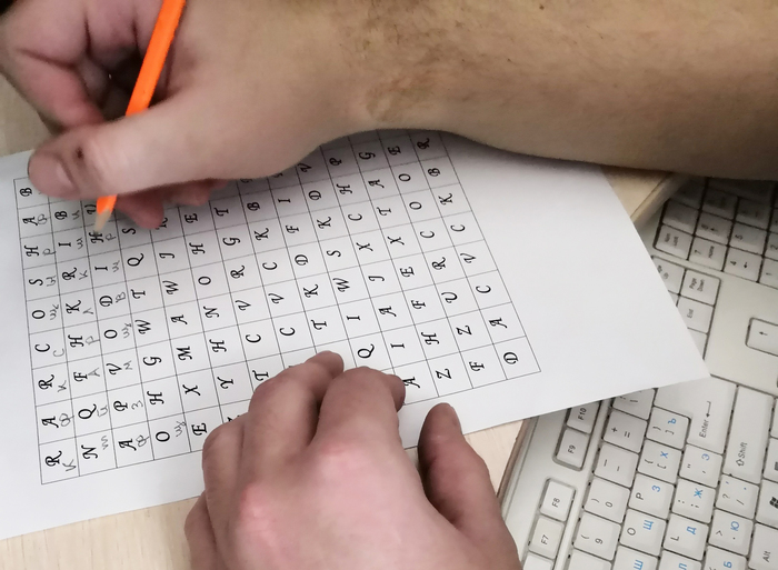 Итак, нумерация листов составлена, листы расположены по порядку, наложены на лист с шифром, ииии....пумпурумпурурумммммм, имя нашей чудесной дедушки: