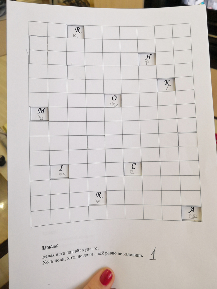 Вот тут, дорогая наша дедушка, честно признаемся, что сначала жутко затупили - лист с описанием загадки прилип внутри конверта и добрые полчаса мы пытались понять, что же нам нужно сделать.. :DDD