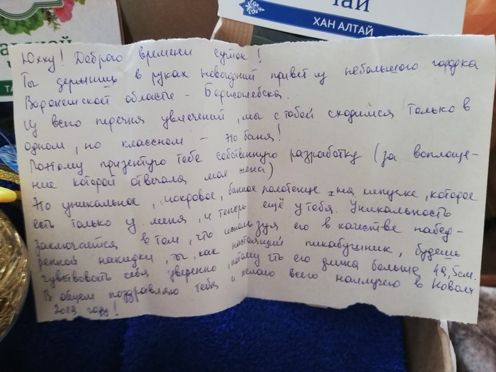 Дорогие Дарья и Леонид! Своей небольшой семьей мы хотим сказать вам огромное спасибо! Этот подарок для меня очень важен, потому что в прошлом году Анонимный дед Мороз, а потом и дед Альтруист оставили меня без подарков, хотя связывались и говорили, что вот-вот отправят(от этого было еще обиднее ничего не получить). Вы подарили не только чудесные материальные вещи, но и веру в чудо, веру в Новый год!