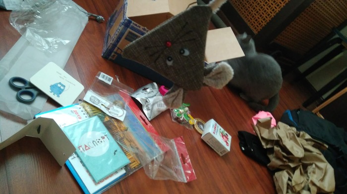 В большой красной коробке - сладости, магнитики и, неожиданно, носки🤔 Дедушка Мороз написал, что это - "месть девушкам за 23 февраля". Ну ничего, у меня есть твой обратный адрес, я тебе тоже отомщу😁