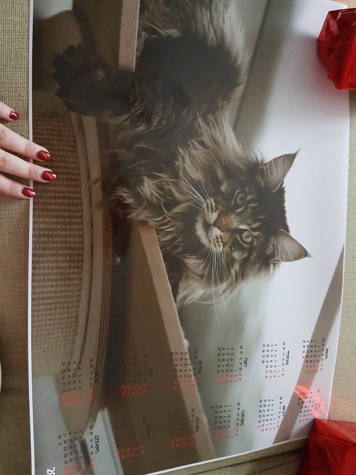 Календарь с котищем-кунищем😀 очень похожим на нашего. Будь кот под рукой, всенепременно полежал бы (коробки он не любит, а вот сумки и прочие плоские предметы - хлебом не корми, дай полежать). Ниже на фото он, сторожит летом в деревне огурцы в 10-литровых вёдрах.