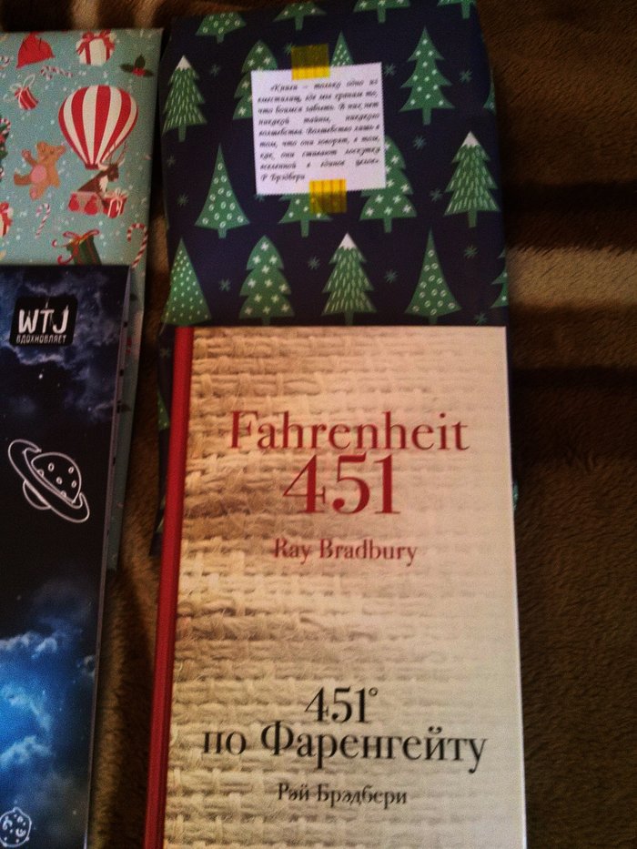 содержит потрясающую книгу 451 градус по Фаренгейту (прочитаю в новогоднюю ночь);