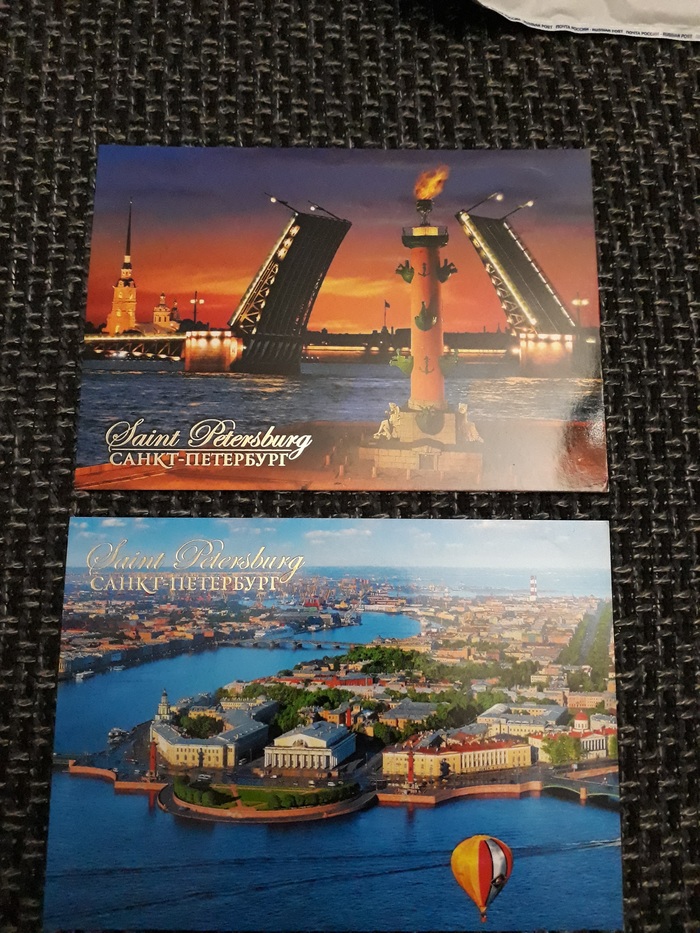 Письмо шло 17 дней, по номеру отслеживание почему то не получалось и мы думали что письмо ещё находится в Питере. Вот мои подарочки, две красивущие открытки( в Питере ещё не была) магнитик который так часто видела на просторах интернета, а теперь у меня есть мой собственный! Блокнот которых всегда мало и конечно же сладость))Спасибо!!