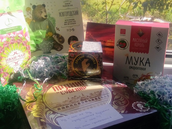 Решил заварить чаю подарочного и вспомнил что не отписался после получения подарка. Огромное спасибо Таисии за такой теплый и душевный подарок. После вскрытия коробки сразу было видно что хороший человек его упаковывал. Из муки обязательно что нибудь приготовлю и поделюсь.  В отпуск с супругой поеду обязательно мед с собой возьму))) Спасибо!