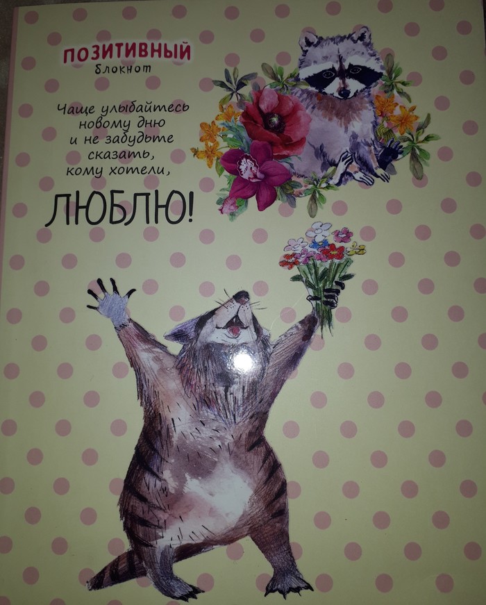 Блокнот с енотиками. Уиии! Я обожжжаю енотиков, мечта прям-завести енота.) Уже срочно спрятан, чтобы дочка не покусилась на мою преееелесссть.