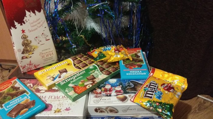 Завершают все конфетки. Мне самому много их нельзя, т. к. с начала декабря подсчитываю калории, но завтра парочку заточу.