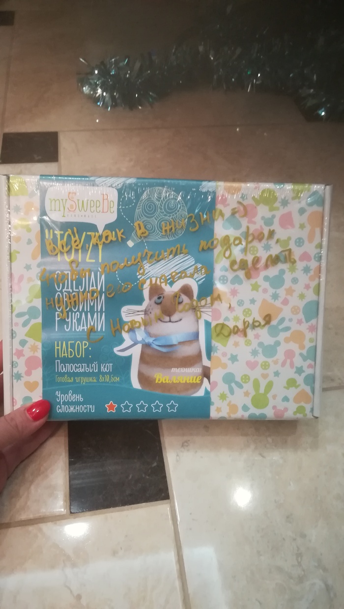 Насмотревшись на рукодельниц Пикабу, мне ужасно захотелось котика из шерсти, и мой тайный санта подарил мне его!! Ура ура ура!!! Я сама его смогу сделать, надеюсь руки меня не подведут