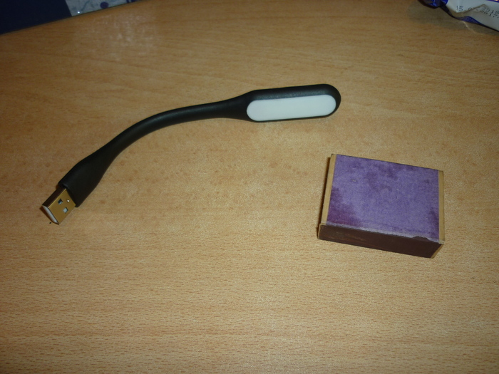 Далее был фонарик к USB порту.  Наконец то я не буду вслепую всматриваться в клавиатуру ноутбука ,лежа в кровати перед сном. (коробок спичек для сравнения)