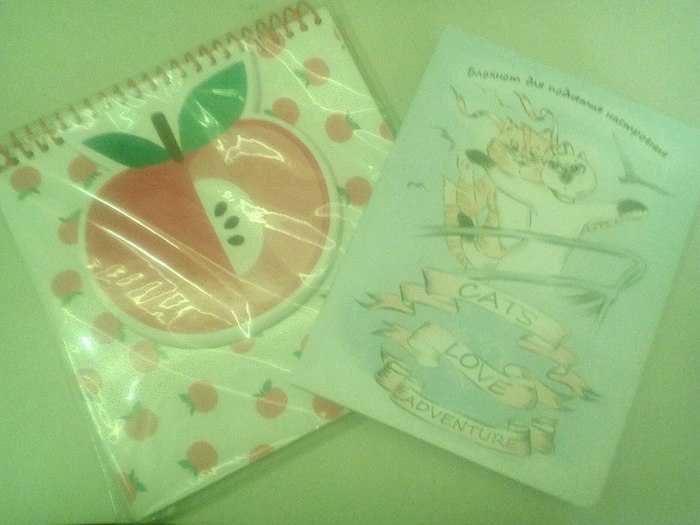 внутри лежали очень красивые блокноты,мечта для школьника-рисоваки:)