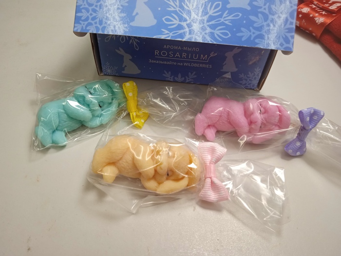 • Ароматические мыла в виде зайчиков (я как раз подсела на бомбочки и арома свечи, думала оставить эту тему на следующий год, но похоже это судьба));