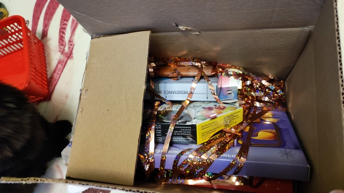 Чай, чак-чак, книга о любви, носки с котами, игрушка для собаки, вкусняшка для инспектора. Вот тут вы, наверное, думаете, что я зажралась, но не все так однозначно. У чая не указаны ни дата изготовления, ни срок годности, у чак-чака дата изготовления отпечатана неполностью - непонятно, свежий ли он. Также у меня аллергия на мед из липы, о чем указано в анкете, в составе чак-чака мёд, а вот какой - не указано. Люблю читать, в основном фентези, но и современную прозу тоже, - к книге никаких претензий, пусть и не самый мой любимый жанр.