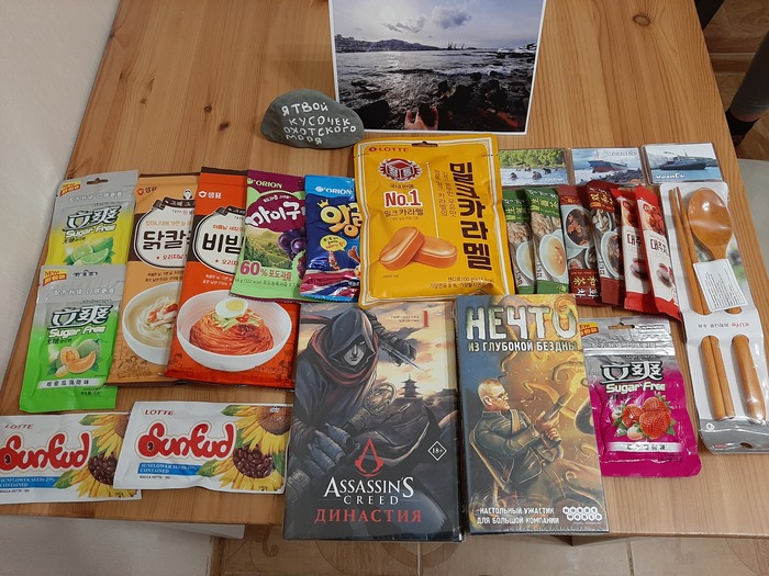 Дальше обнаружились куча корейских вкуснях, магнитики, настолка и графический роман. Человек и в анкету попал, и локальные вкусняхи собрал. Я просто в диком восторге.
