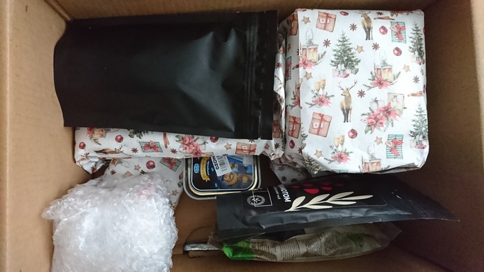 Мой основной "Дед Мороз" благополучно меня проигнорировал, попала в список к альтруистам. От одного "Вы выбраны альтруистом в качестве получателя" меня захлестнуло детским восторгом. Мне приедет подарочек!!! Мне! Подарочек!.. Я была даже рада, что так сложилось, ведь альтруисты - добряки, которые несут счастье тем, о ком кто-то забыл. Прошло два дня и тут на телефоне появляется сообщение от почты - завтра прибудет посылка - ждите! В описании 4 кг... Шутили весь день с мужем, будет ли там большой бюст Ленина) Хорошо, что почта в Украине очень быстрая, на следующий день коробка из другого города была уже у меня.